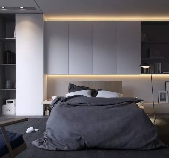 这样一来,卧室里的各个角落都能被超大化的利用起来,而且令整体效果更为简洁统一,空间机能大大增加。