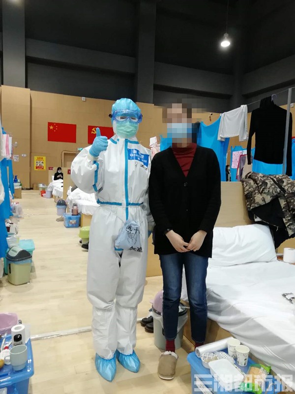 2月15日,小淼进入方舱医院的第一天,离开父母求诊的她,心情很低落。当时,她看到一个穿着防护服的医护人员,腰上挎着一个自制小挎包,还写着:“热干面,加油!”“顿时心里就暖了起来,很感动。”小淼记下了这个人的名字——谢宇雯。
