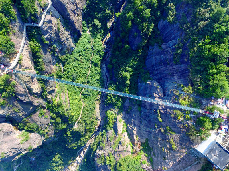 玻璃桥景区石牛寨位于湘、鄂、赣三省交界处的湖南平江县石牛寨镇(原大坪乡)境内,是由怪石、奇峰、石洞组成的丹霞世界。现为国家AAAA级景区、国家地质公园,寨内景点众多,还有玻璃桥,悬崖秋千,步步惊心,告白喊泉等游玩体验项目, 已成为湘鄂赣三省著名的旅游目的地。
