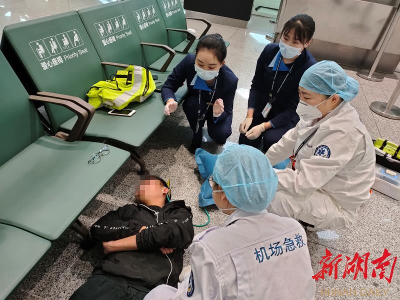 5分钟后,急救人员到达现场。看到旅客仰面躺在冰冷的地面,王一羊赶紧拿自己的衣物垫到了旅客的头下。紧急救护过程中,旅客意识仍不清醒,躁动不安,不愿配合吸氧,扯动着吸氧管。此时曹嘉琪轻声安抚旅客说:“我们在您身边,不用着急,您正在吸氧,一切请放心。”直到确认旅客身体状况稳定后,她们才离开。随后,该名旅客在机场工作人员的帮助下改签后,前往医院做进一步检查。