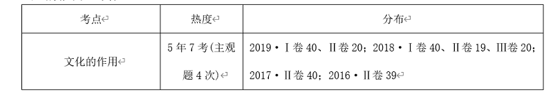 5年7考(主观题4次)这些告诉我们,文化的作用这个知识点是高考中非常重要的高频考点,要引起我们的高度重视。选择题和主观题涉及到:文化的实质、文化与政治、经济的关系、文化对人的影响、文化的性质等,关于文化作用的知识都在试题中出现了。这要求我们沉下心来仔细琢磨教材的每一句话,真正理解落实。