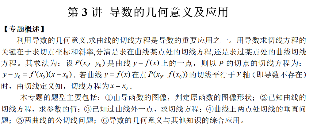 高考云课堂·数学:第3讲 导数的几何意义及应用