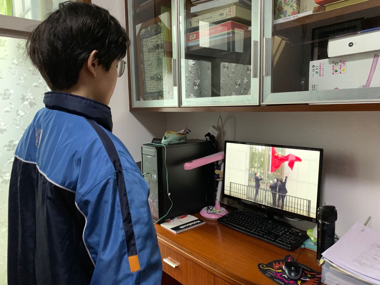 3月9日清晨,长郡中学举行“云升旗”仪式,4000多名师生齐向国旗敬礼!其中,包含了一位特殊的参与者——连续32天奋战在武汉抗疫一线的该校1901班肖雨析的爸爸肖湘成。