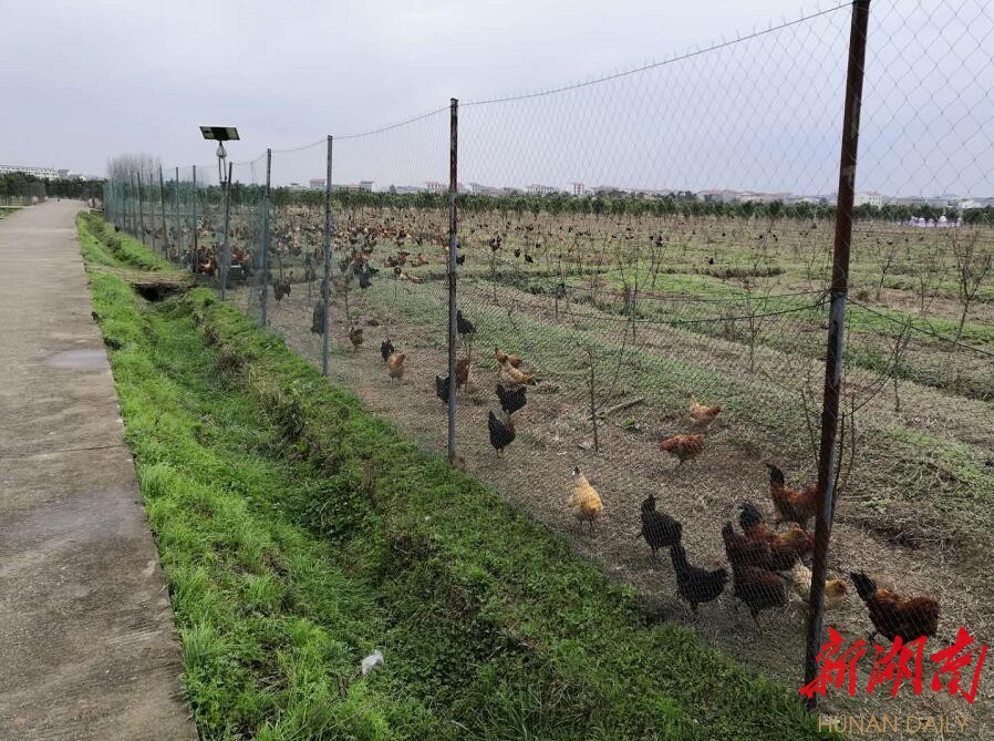湘沪农业园已开园6年,1000多亩的园子里,种满蔬菜、果树。记者刚进园时,便闻鸡声。走近时,树下觅食的一大群土鸡,迅速围拢来,隔着防护网,默默望向行人。
