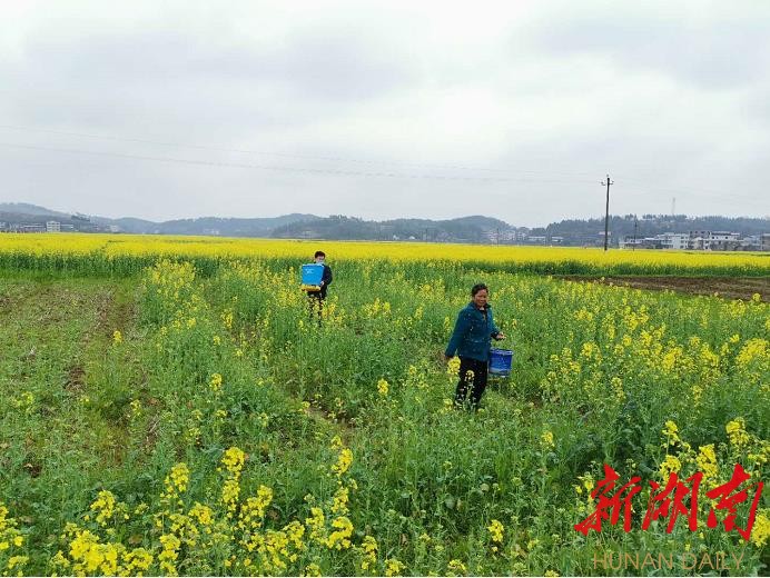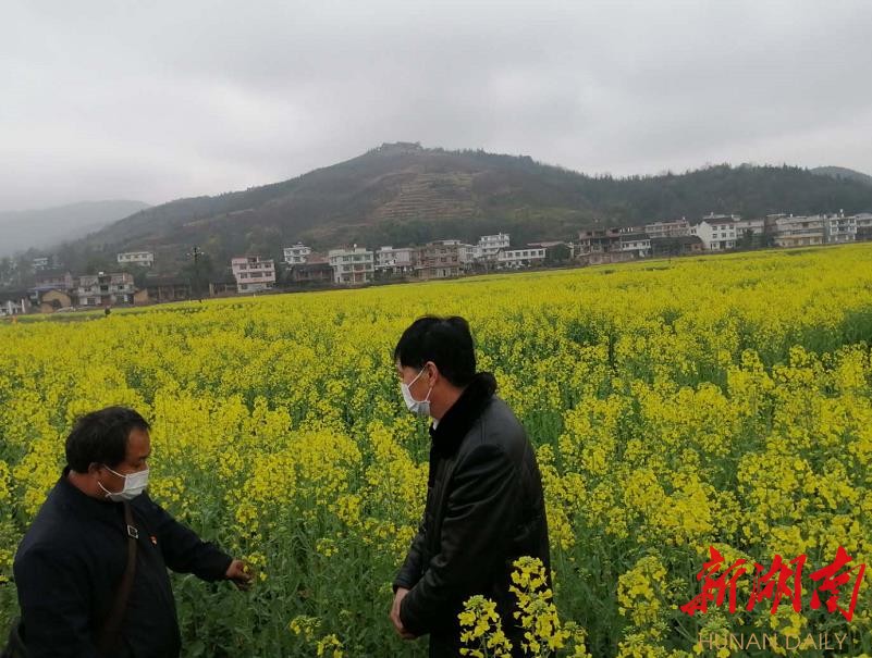 湖南日报·新湖南客户端3月2日讯(记者 郑丹枚) 3月1日,邵东市农业农村局相关负责人带领农技人员来到邵东市简家陇镇油菜基地,指导农民进行田间管理和病虫害防治。立春以后,油菜进入抽苔开花期,该市在抓好疫情防控的同时,派出农技人员深入乡村田间地头,指导农民搞好田间管理以及病虫害防治,确保今年油菜增产增收。