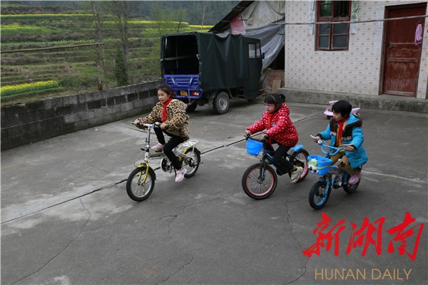 这个假期,杨芊慧动手制作了一张课程时间表,除了上网课、辅导妹妹们学习、教弟弟认字之外,她还负责洗碗扫地,承揽了大部分家务活。中午是杨芊慧带妹妹们在庭院骑单车的时间,这大约是她们最轻松快乐的时光。