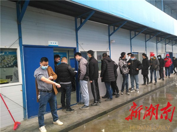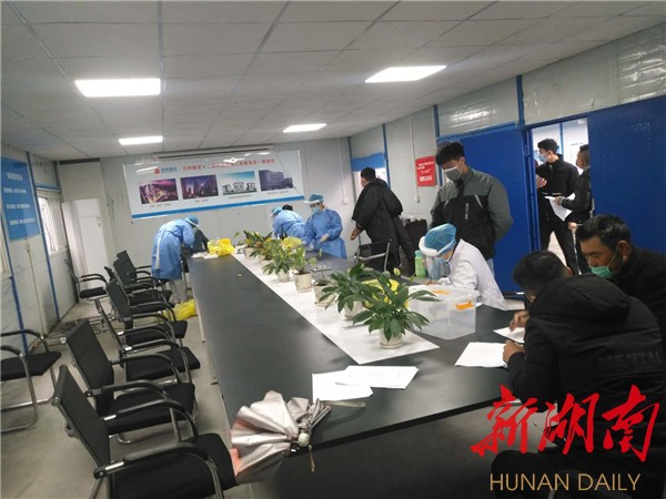 新湖南客户端3月1日讯(通讯员 谢丹)春回大地,万物复苏。近日,在湘西土家族苗族自治州吉首市镇溪街道砂子坳社区黄连洞碧桂园项目施工地工棚内,复工人员正有序排队等待检测;另一边,镇溪街道三楼会议室举办的“阻击新冠肺炎公益性岗位人员上岗培训”会如火如荼。