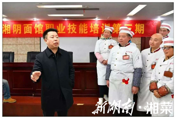 “湘阴面馆”标准化工作小组组织编订了《湘阴面馆美食烹饪工艺》、《湘阴面馆职业技能培训(习题集)》《湘阴面馆职业技能培训(服务指南)》等教材;完善专业技能初级、专业技能中级和经营管理高级等不同级别的培训班设置。自2018年12月以来,湘阴已连续举办了8期“湘阴面馆”职业技能培训班,邀请资深烹饪师傅,教学以实际操作为主、理论授课为辅,传授面条、高汤、炖肠等湘阴特色菜的制作工艺以及食品安全、创业知识,共培训学员400余人。