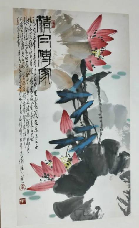 有一次,李老师约我去他家,看中央电视台《东方之子》栏目报道他的专题节目,观后他为我画了一幅荷花,上面的题款是:“清白传家1995年5月11日中央电视台东方之子播余从艺节目,恰安成学弟来石屋,观后忆与安成学弟四十年来彼此艰难岁月,不胜人琴俱老之感,写此为赠,留作他日佳话也,长沙白石门外李立,时年七十,尚偷活人间。”