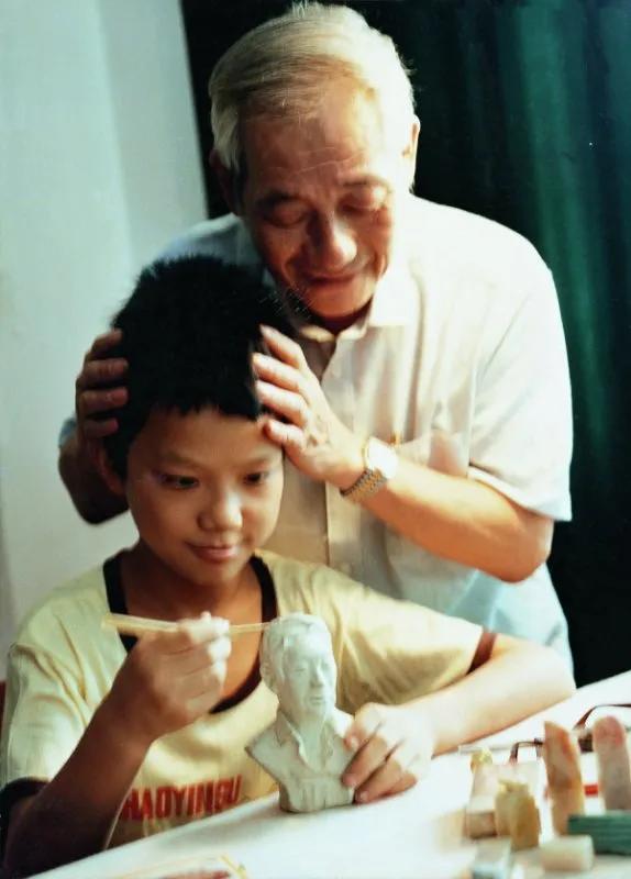 李老师对我两个儿子——贺奕和贺羽的成长也非常关心,尤其是知道贺羽自幼也学画,经常问他的情况。1985年,他到株洲,还特意要我带贺羽去见他。贺羽用橡皮泥为李老师当场做了个塑像,被在场的记者拍了照片,并配了一篇访谈录发表在株洲日报上。