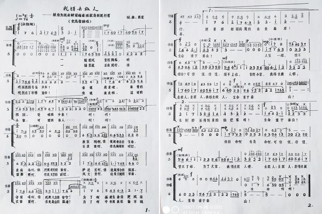湖南日报·新湖南客户端4月6日讯(记者 徐典波)“为了中华民族你奋不顾身,永别那即将来临的灿烂黎明!人生一程,谁不惜命?可你说,顾不上了,生命重于泰山,我得去救人!”清明节期间,一首由岳阳日报社退休编辑王肖龙与湖北省歌剧舞剧院湘籍青年女高音歌唱家肖璀婷联手打造的抗疫歌曲《我得去救人》,在即将解封的武汉诞生、咏唱。
