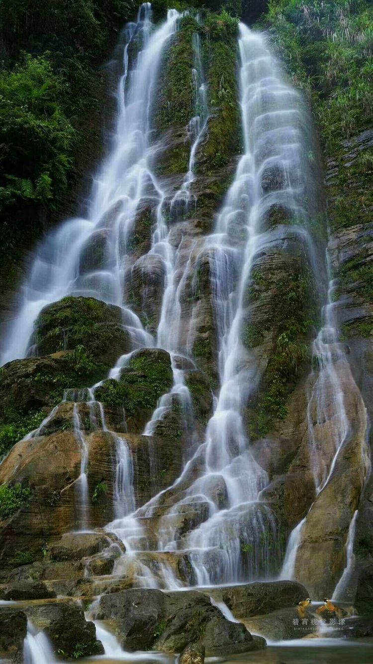 形态各异的瀑布,那千丝万缕的银丝从跌宕起伏而又光滑的高坎漂下,形成巨大的落差,冲出一个瀑布潭,很是让人浮想连篇。