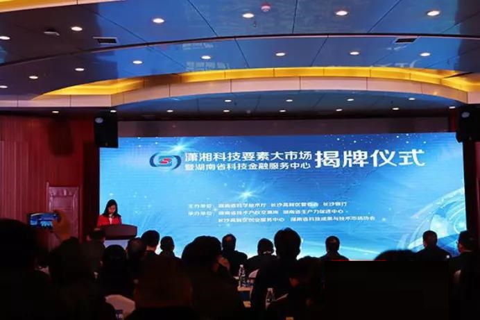 ▲潇湘科技要素大市场暨湖南省科技金融服务中心揭牌仪式现场。