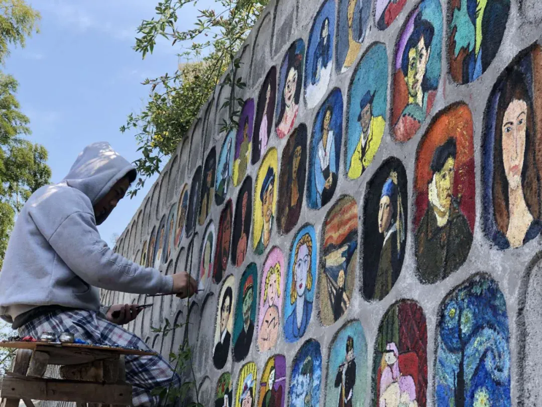 中午的阳光毒辣,墙面反射的光颇为刺眼。