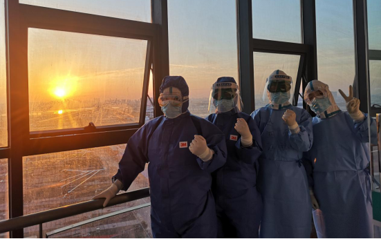 湖南湘雅医院重症医学科——第一批队员在武汉市金银潭医院病房合影