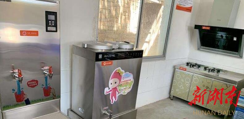 “九阳•希望厨房,祝同学们健康成长!”5月12日,湘鄂两省交界处的平江县南江镇罗洞小学,红底白字的铭牌赫然入目。近两年来,由财政部驻平江定点扶贫工作队队长兼县委副书记邢朝虹引进的24所“九阳希望厨房”陆续走进老区,为平江师生带来不一样的人间“烟火味”。