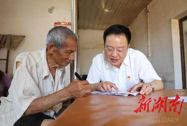 湖南日报·新湖南客户端5月9日讯(通讯员 曾玉娟)“老肖,今年你种了多少亩地?我们过来现场核实,可以申报奖补资金哩!”5月8日上午,邵阳市双清区委书记吴劲松到渡头桥镇两塘村调度指导脱贫攻坚工作,在走访慰问联点贫困户肖习仪时认真核实扶贫产业奖补面积。经过逐一询问比对后,得知今年上半年可以申报1030元的种植奖补资金后,肖习仪布满皱纹的脸上笑开了花。