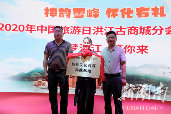 活动当天,湖南新华启承文化旅游有限公司向洪江古商城景区、星空小镇景区授牌--统文化教育实践基地