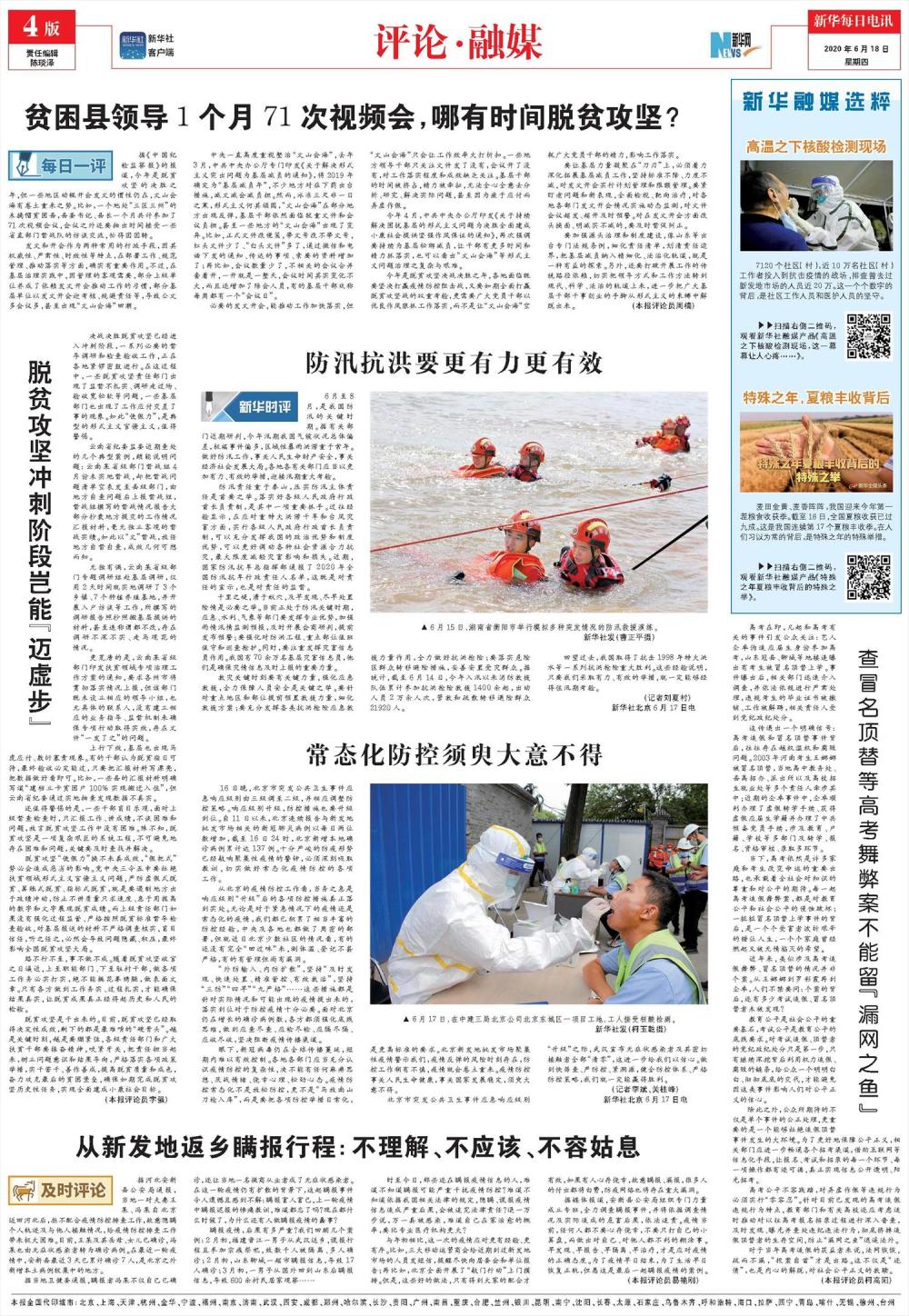 今年是脱贫攻坚决战决胜之年,各地面临既要坚决打赢疫情防控阻击战,又要如期全面打赢脱贫攻坚战的双重考验,更需要广大党员干部以优良作风狠抓工作落实,而不是让“文山会海”空耗广大党员干部的精力,影响工作落实。