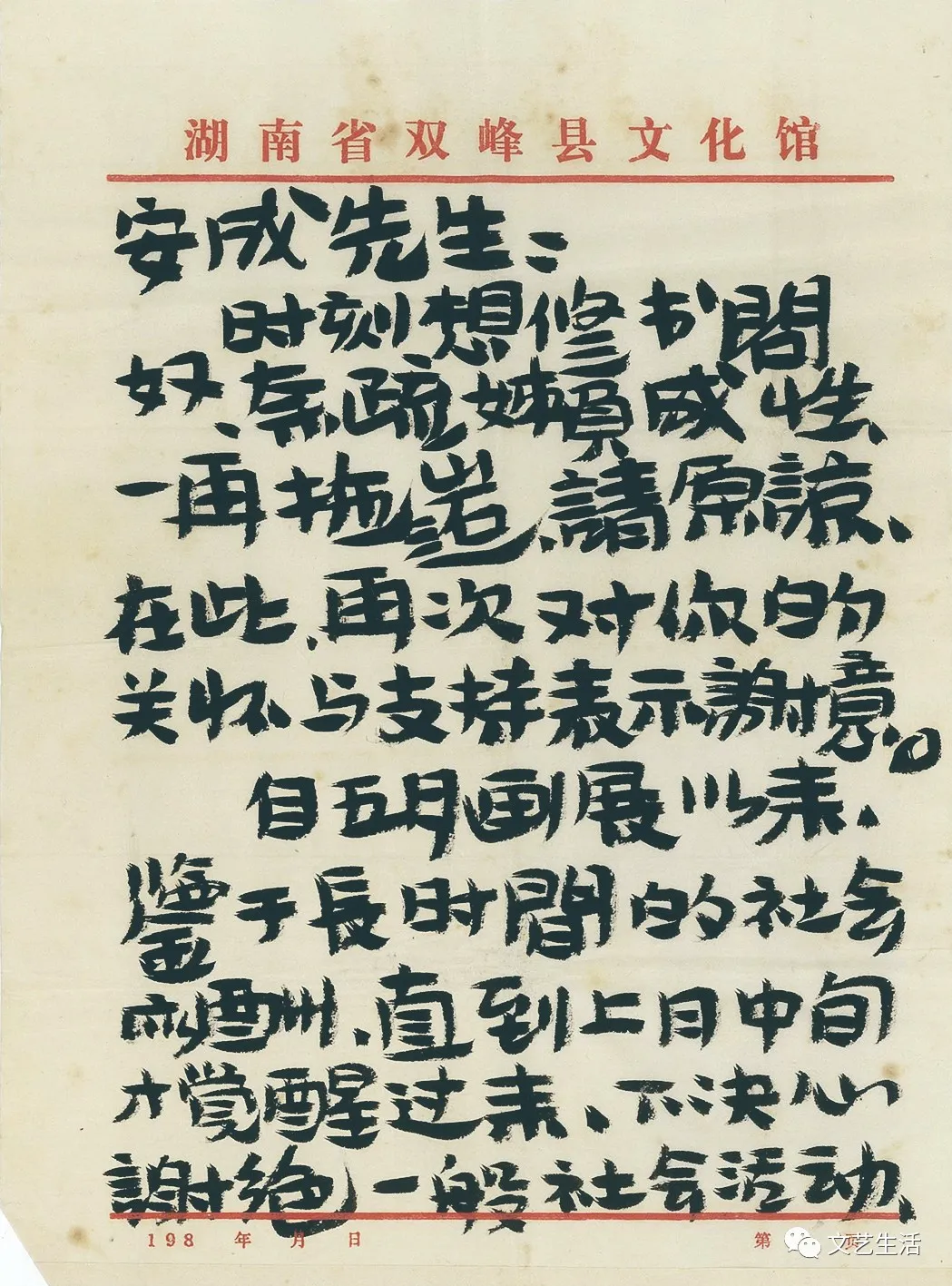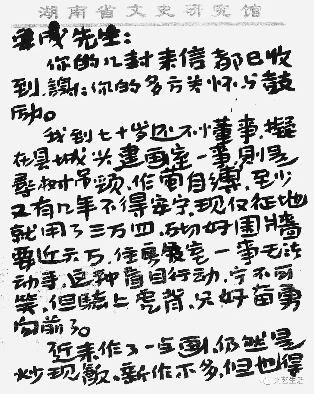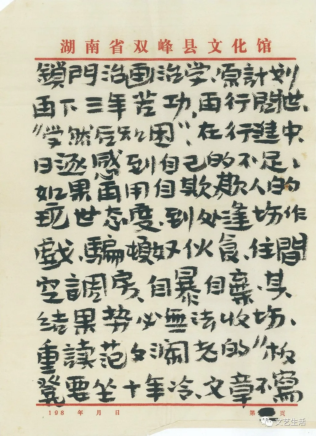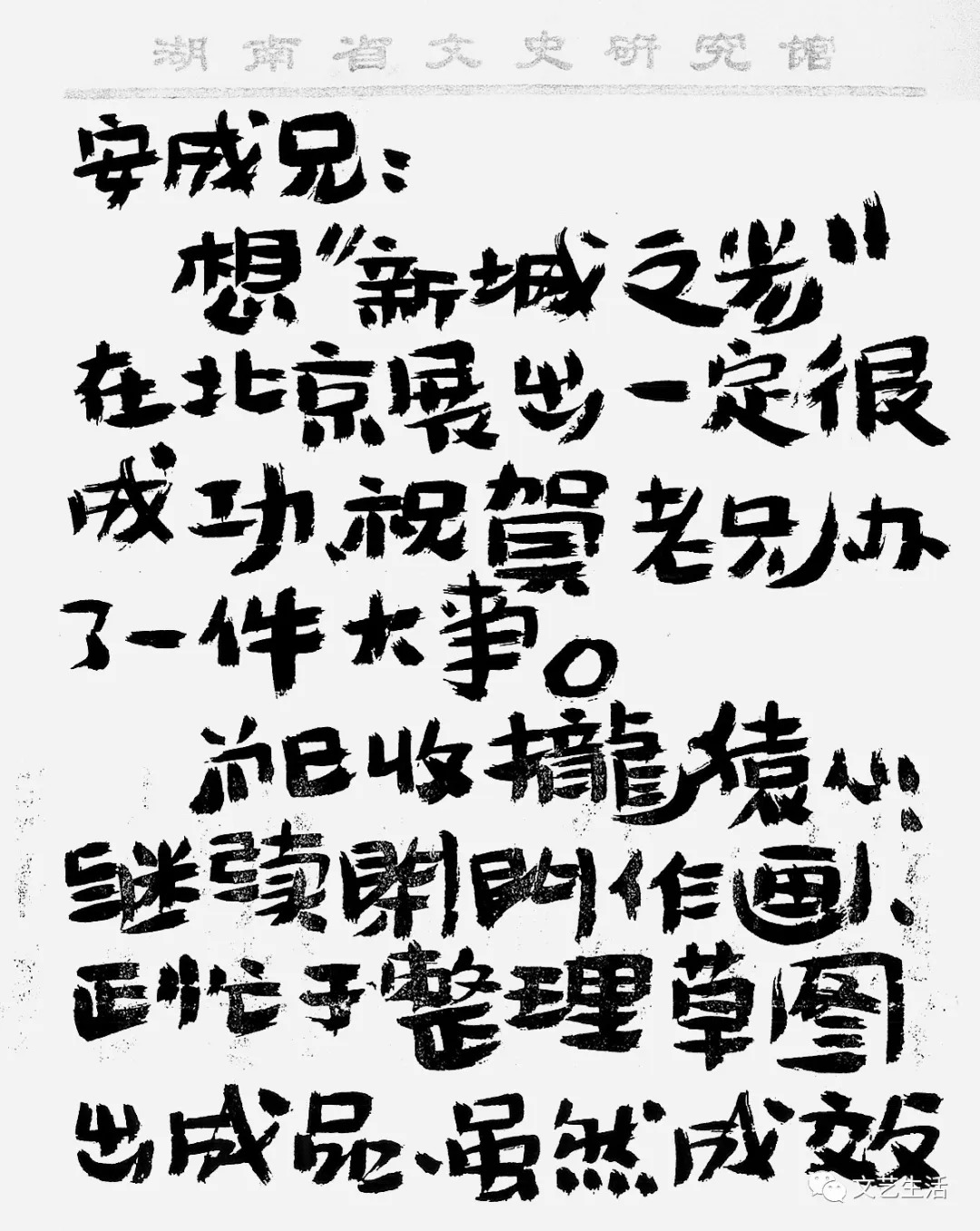 老谢和王憨山颇有交情,知道我也是双峰人,想介绍我和他认识。王憨山本人也非常愿意见我。这时我正在株洲市图书馆主持一个厂矿作者的美术创作班,整天忙不过来,无法抽身去长沙会他。我表示,如果方便的话,欢迎王憨山到株洲来。