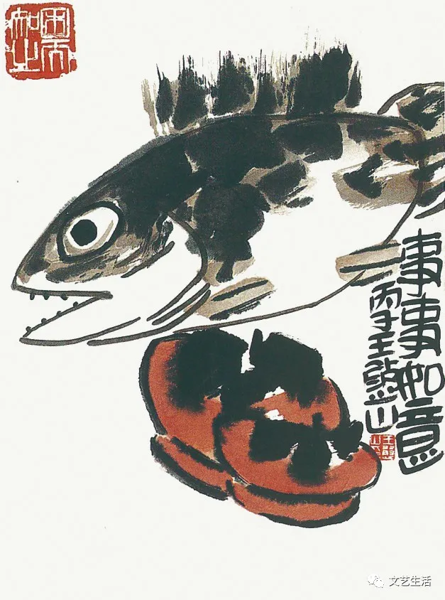 他以后倒是将“年年有余”的鱼画了很多很多,而且幅面也越来越大(这可能与书画市场上开始按尺计价有关吧)。王憨山还打算在县城里盖一栋大一点的画屋,他盖的画屋还是毛坯房的时候我去看过,只见一楼当街有六个门面,他的六个子女一人一个,算是一碗水端平,他想把儿女们全都拢在一起,让他们在大树下乘乘凉。后来他多次写信向我诉苦,他的建画屋的举措不但劳民伤财欠了一身债,还浪费了好多年的宝贵时光。他的画屋建好后,新的矛盾又层出不穷,让他难以应对。他不无遗憾地写信给我说:这简直就是寻树吊颈!