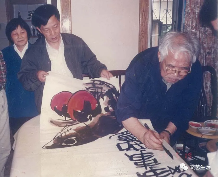 在寒暄中,我初步得知他早年在长沙求学于华中艺专,后又到南京美专和杭州国立艺专跟高希舜、潘天寿学画。解放前夕,他在家乡参加过中共地下党领导的地方兵团。说到这里时,我脑子里闪过一个念头:其时我父亲也正在双峰一带开展地下工作,不知是否见过他这位小青年。因这一点,我和他的关系似乎拉近了一些。解放后他参了军,在湖南军区搞宣传,但因脾气太犟,为一点小事得罪了领导,不久被转业到双峰县,后来又到了文化馆。前些年为让儿子顶职提前退休,之后一直住在乡下,埋头大写意花鸟画的研究与创作。