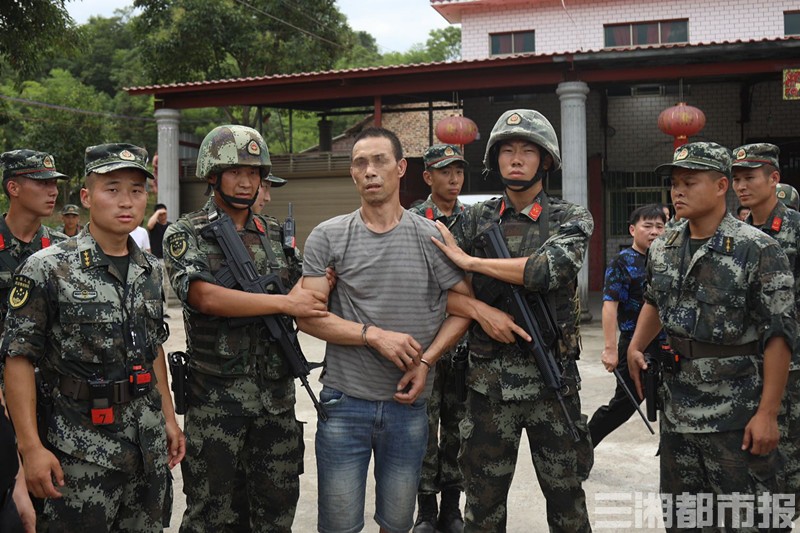 接到通报后,支队立即按照处突预案,由魏杰副支队长带领支队前指、任务分队迅速向龙塘镇龙塘村十组开进。到达现场后,谢林均支队长立即组织各级指挥员判明情况并部署任务,决定兵分三路,采取分片划区、重点搜索的方法,对犯罪嫌疑人可能藏匿的龙塘村十组附近山林区域进行合围搜捕。15时许,武警搜索一组在公安干警的配合下,于龙塘村十组附近山中成功将犯罪嫌疑人抓获。