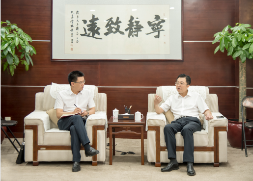 6月1日,湖南建工集团党委书记、董事长蔡典维(右)接受记者专访