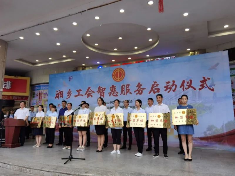 当天上午,与会人员共同观看了“湘乡智惠”建设宣传片;领导嘉宾对加盟单位代表进行了授牌,并在家多旺购物广场体验了会员普惠服务。