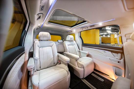 当然,对于一款豪华商务MPV来说,最重要的还是宽奢优雅的车内环境和乘坐舒适度,尤其是被贵宾们经常光顾的第二排座椅。