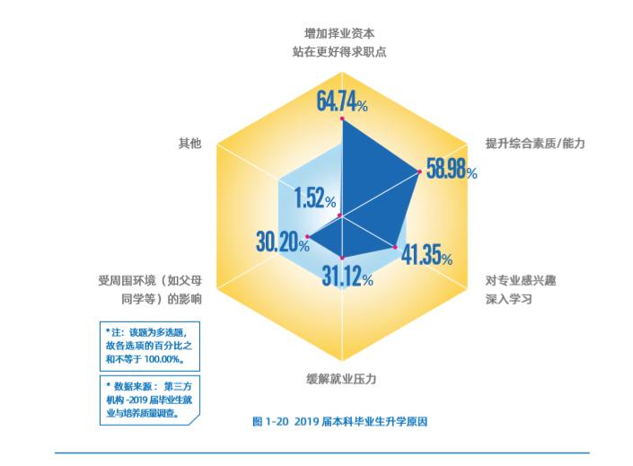 在2019年毕业生就业质量报告中,一部分高校也对本科毕业生选择深造的原因进行了调查。