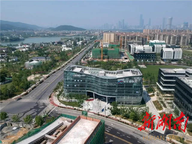 相隔不远,“玻璃幕墙、异性结构、屋顶绿化”的中建智慧谷各建筑主体几近完工,嵌于湖光山色间,亮眼夺目。走进其间,华锐金融、云天励飞、集商网、京东智联云等企业标识令人应接不暇。
