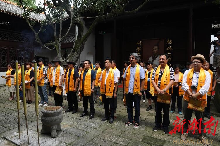 “魂招屈子兮,升座朝堂;文化名流兮,祭奠忠良……”屈子祠内,伴随着声声古乐,采风团朗诵祭三闾大夫文,以虔诚的方式进行朝圣、追思先贤。