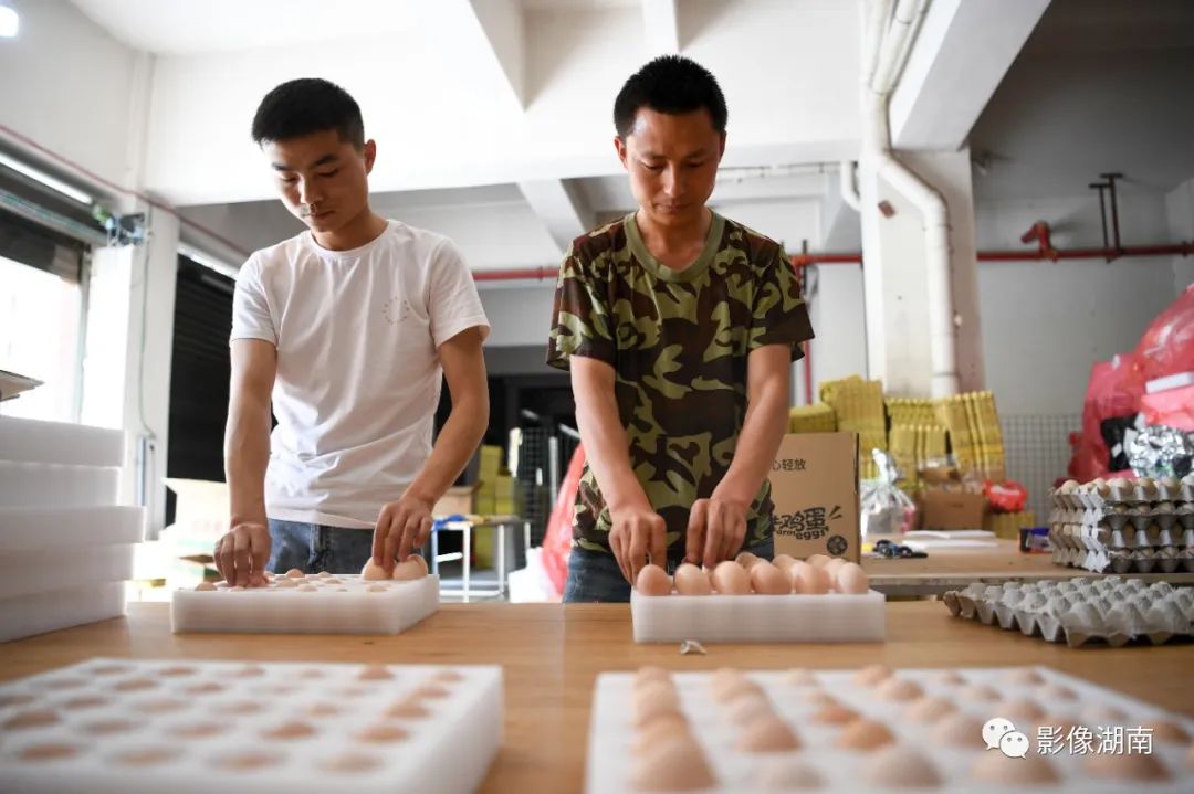 ▲5月27日,永顺县东西部协作扶贫孵化中心,工作人员在打包土鸡蛋准备快递。近年,该县围绕农村脱贫产业,在东西协作扶贫援助资金的支持下,打造特色农产品和生鲜电商销售平台,积极发展农副产品线上线下销售,将猕猴桃、油茶、椪柑等特色农产品销往全国各地。湖南日报记者 傅聪 摄