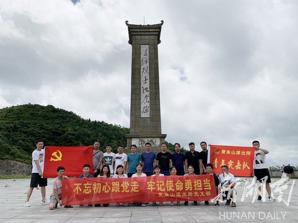 中国共产党成立99周年的纪念日“七一”建党节临近,冷水滩公安分局菱角山派出所组织党员们赴红军亭广场开展“缅怀革命先烈、牢记初心使命”主题党日活动。党员同志们瞻仰了高高矗立在红军亭广场的革命英雄纪念牌,学习了红六军团的革命历史,在肖克、任弼时、王震、李达等红六军团领导人雕像前,党员同志们深情注目,深受老一辈革命家 “坚定信念、追求真理、顽强战斗、终生追随马克思主义的革命精神”感染,久久不愿离开。随后,大家沿着当年红六军团的足迹再走长征路,重温革命历史,缅怀入党初心。