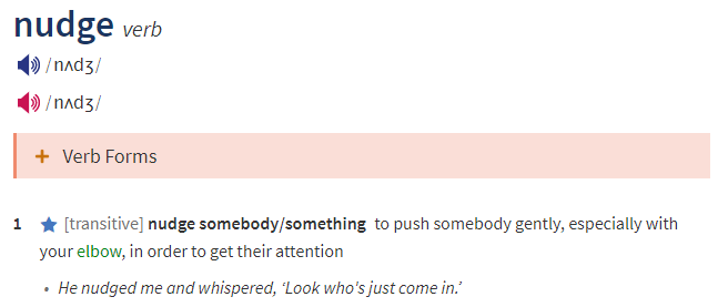 惊不惊喜?意不意外?在牛津词典里,对于nudge的定义是这样的: