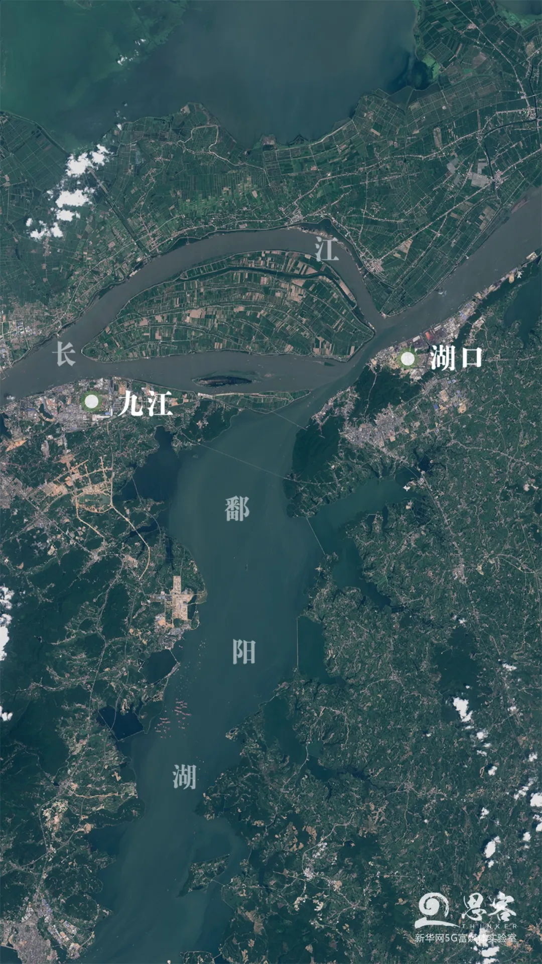 ▲图为鄱阳湖与长江相通的泄洪口。底图来源:天地图