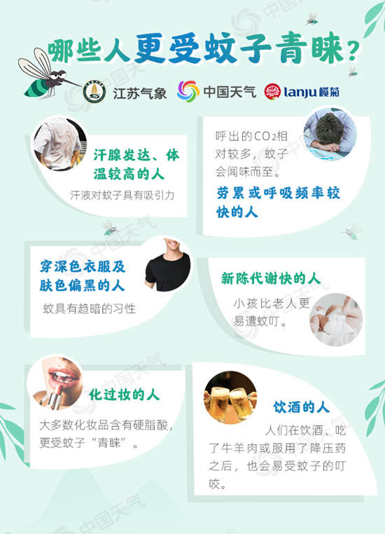茫茫人海,吸血吸到肚子“爆浆”的蚊子为啥总pick你?蚊子容易被热、汗液、体臭和二氧化碳等吸引,所以呼吸频率较快、出汗多、新陈代谢快、化浓妆以及经常喝酒吃肉的人更易招蚊。蚊子还具有趋暗性,穿深色衣服及肤色偏黑的人也更容易招蚊子。