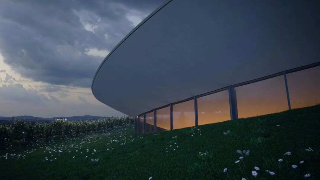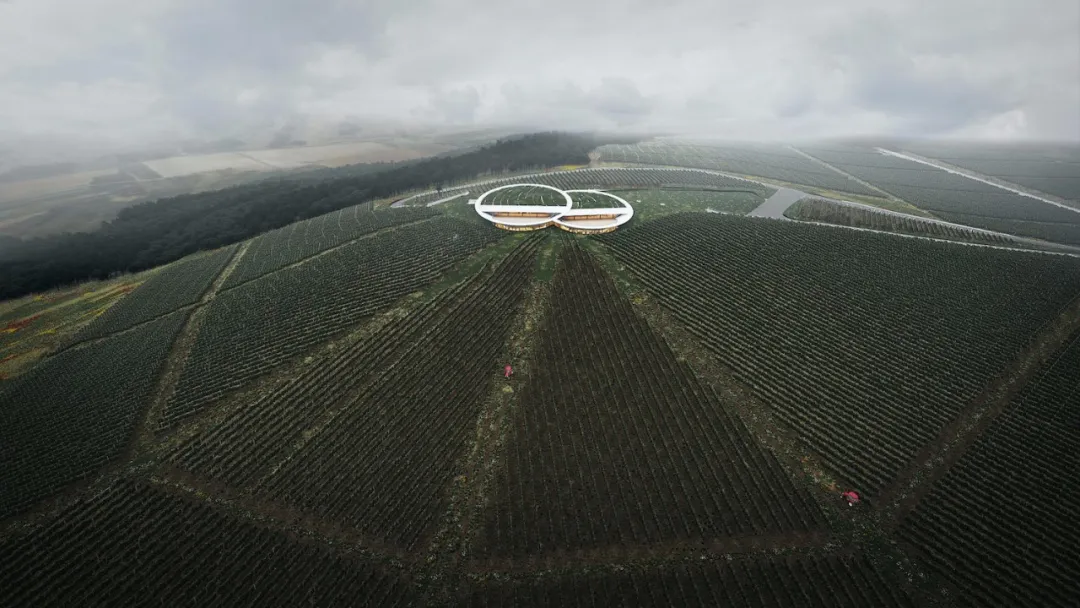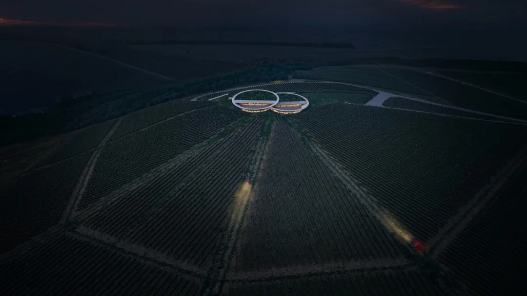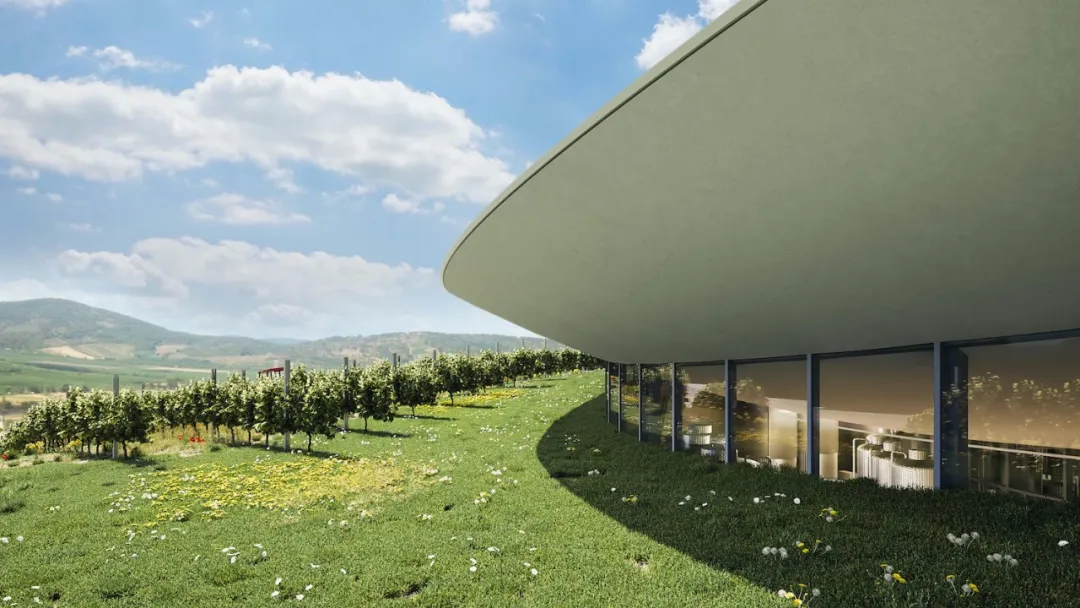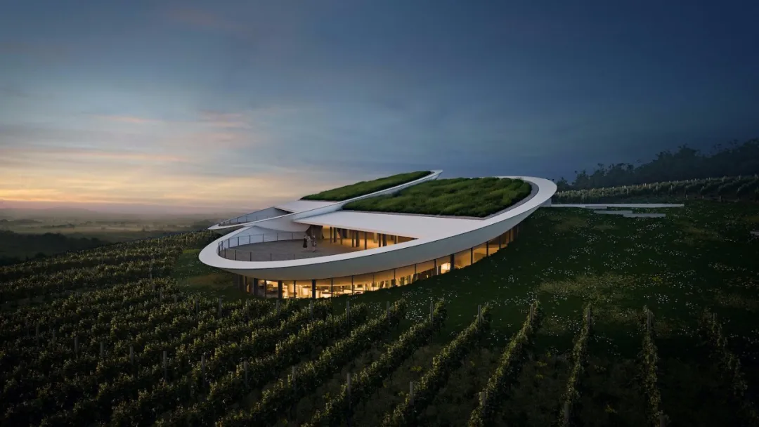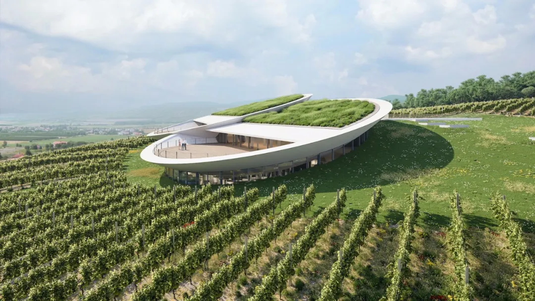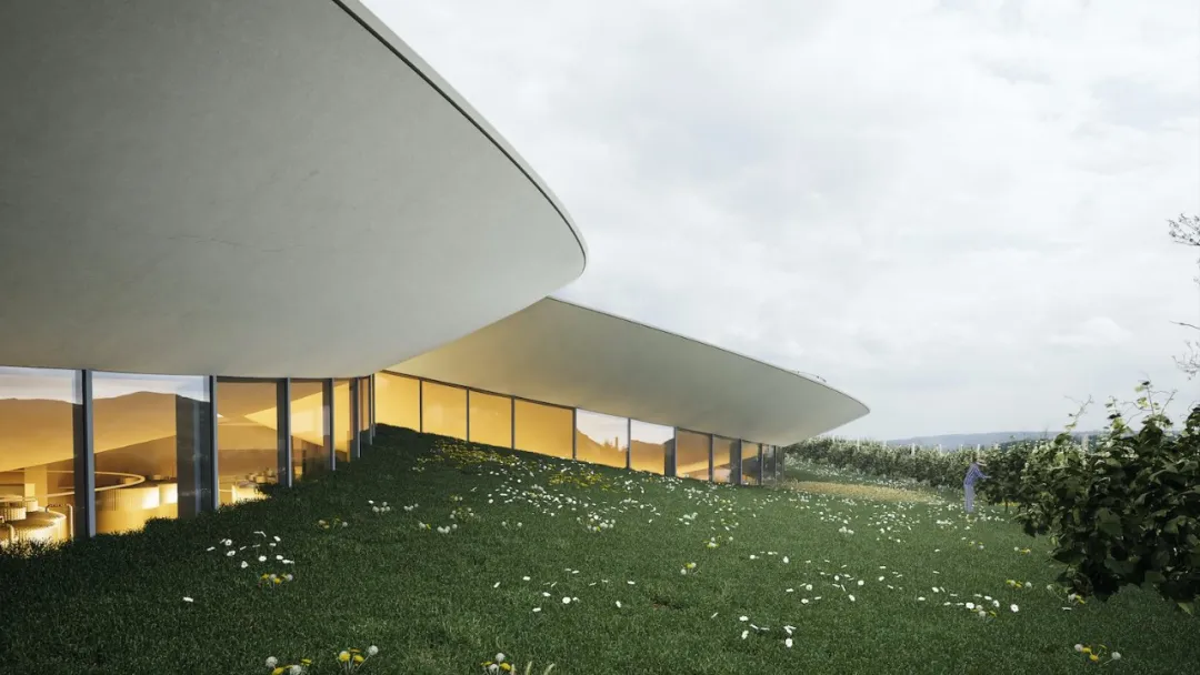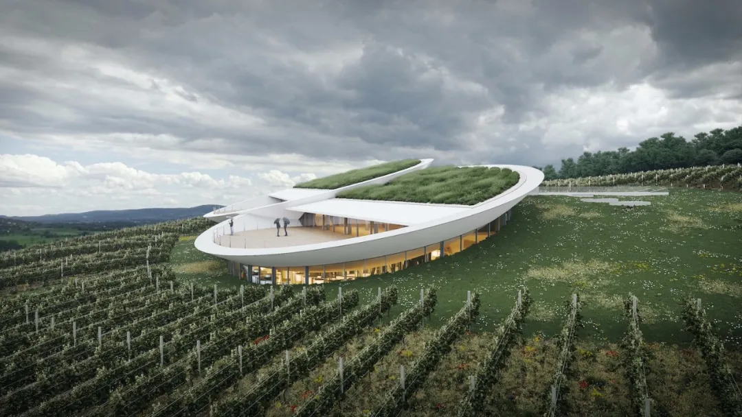 在山顶的建筑似一双好奇的双眼在人们的视线里张开,将此地营造成一个鲜活、动感的新颖葡萄园。