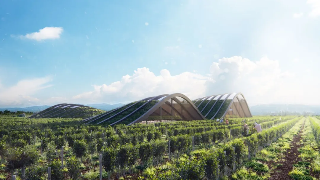 该酒庄内综合了葡萄的种植、酿制、储存、品酒等各种功能,在葡萄园中的2.5米的种植间距被设计者转换为建筑的结构网格,好似小山包一样隆起在葡萄园中,完美地融入其中。