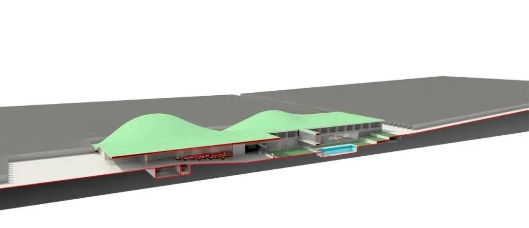 酒厂的一部分建在地下,与游客区相连,形成一个流动的曲线。