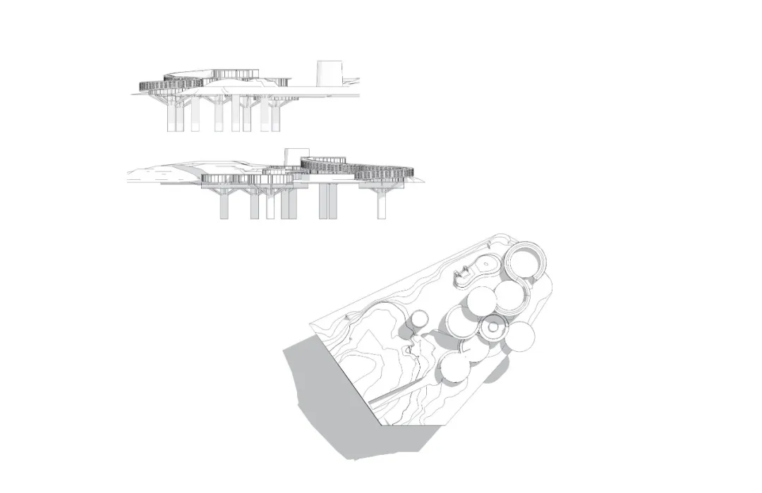 该建筑尽量地减少了自己所占地的面积,并且有效的保护了周围的环境。