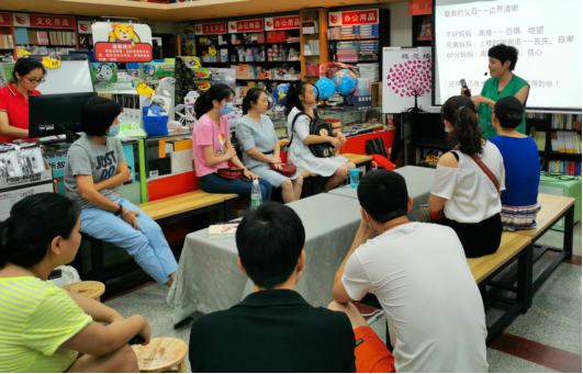 7月19日,为进一步推广湖南省“扫黄打非•护苗2020”专项行动暨全省“绿书签行动”系列宣传活动绿色阅读公益互动活动,并回馈热心参加此次公益活动、积极捐赠书籍的盼盼二小的学生及其家长,长沙市心家园公益人服务中心联合新华书店有限责任公司长沙县分公司开展了“知识照亮梦想”主题活动。活动邀请了盼盼第二小学的数十名家长及学生到县新华书店开展家庭教育沙龙及学生社会实践活动。
