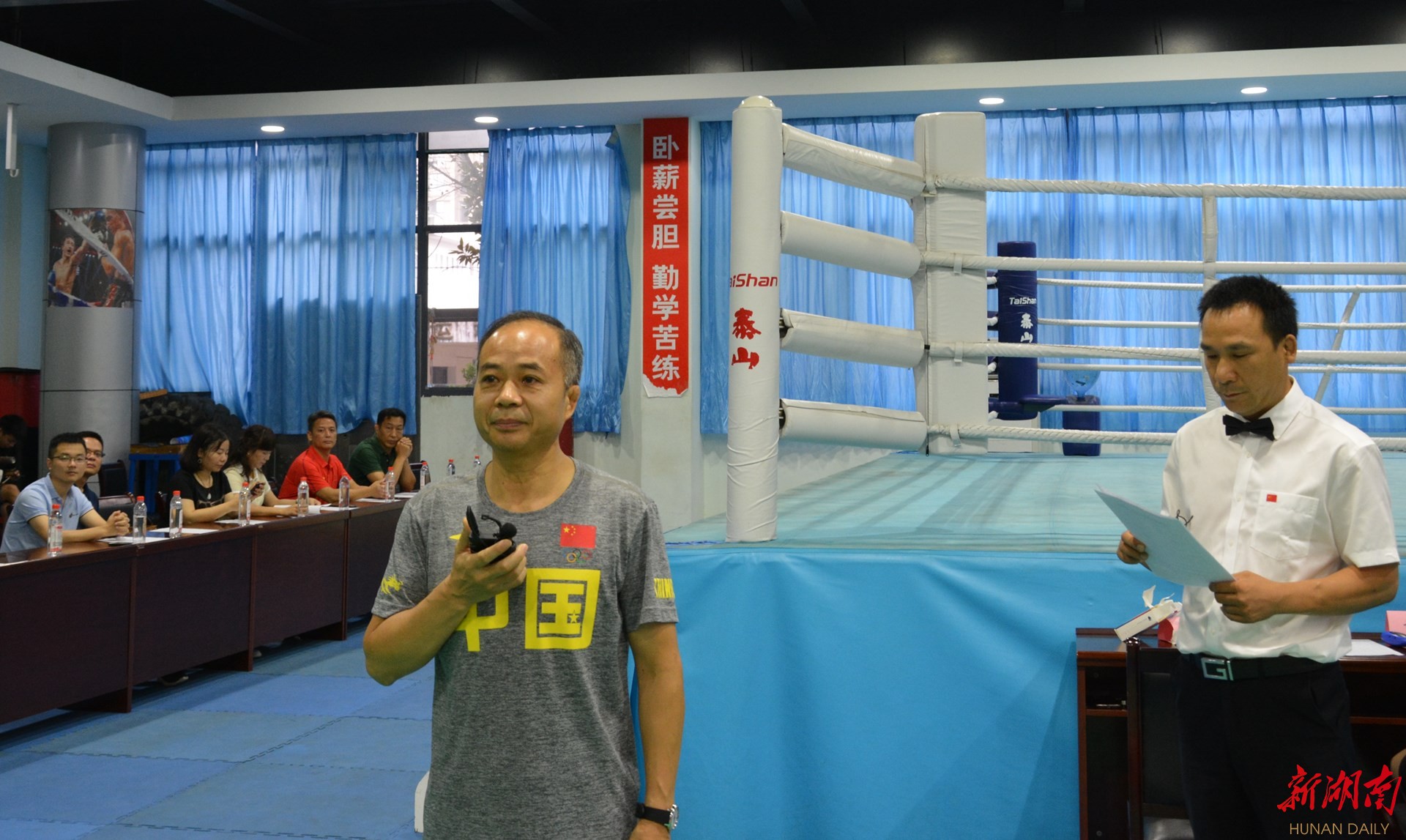 湖南日报·新湖南客户端7月12日讯(通讯员 罗凤军)昨日上午,湖南省摔跤柔道跆拳道运动管理中心(以下简称“省摔柔跆中心”)2020年夏训大比武暨“盛汉博道杯”网络精英赛在该中心拳击馆正式开赛,并由湖南省拳击队拉开此次大比武的战幕。本次大比武是为了检验队员冬训成果,同时,面对2021年第十四届全国运动会的目标,寻找差距。