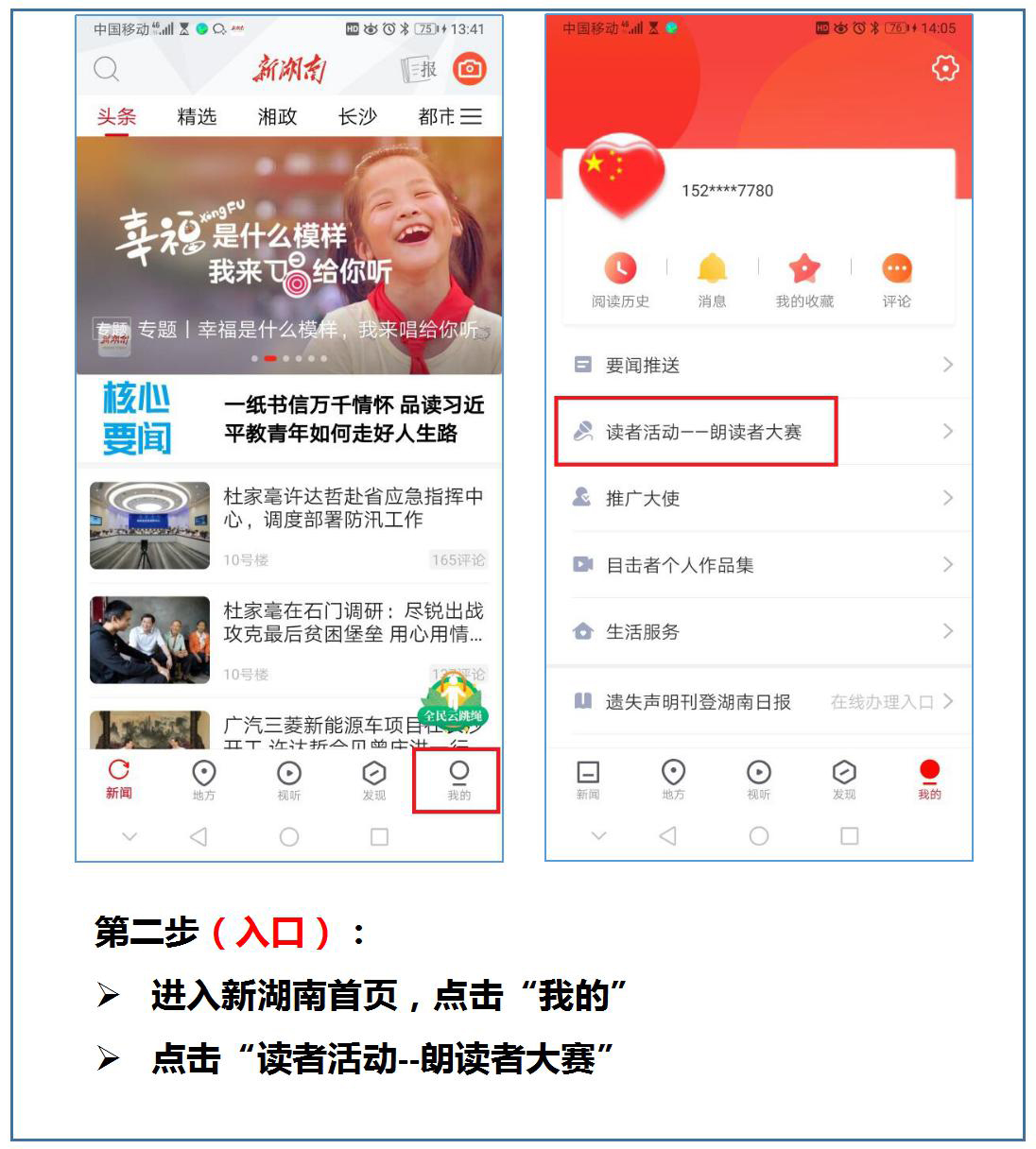第二步:在新湖南首页找到报名入口。进入后,点击“读者活动——朗读者大赛”。