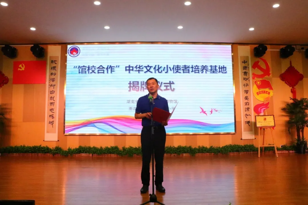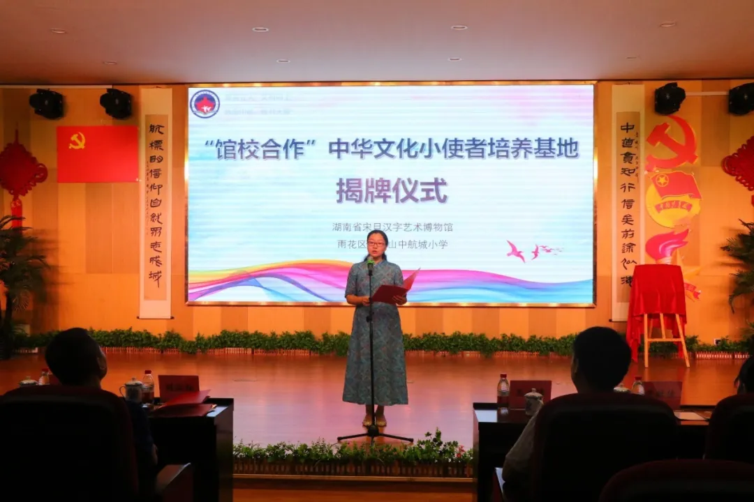 湖南日报·新湖南客户端7月13日讯(通讯员 陈小玉)7月10日上午,“馆校合作”——中华文化小使者培养基地揭牌仪式在长沙市雨花区枫树山中航城小学举行,枫树山中航城小学携手湖南省宋旦汉字艺术博物馆意在为枫航学子搭建一个更好的优秀传统文化的学习交流平台,馆校双方会不定期的开展各类交流、研讨活动,充分结合学校的实际需求和博物馆的优势,逐步探索出一条有学校特色的“个性化”发展道路。