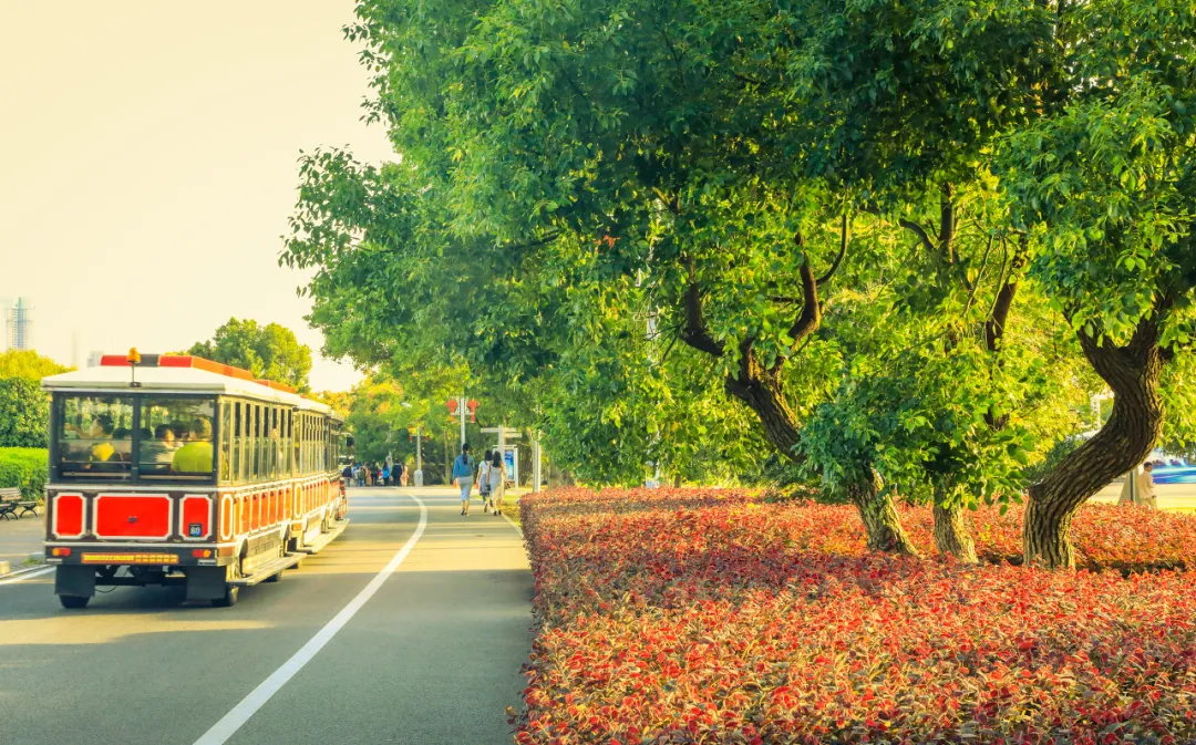 由于橘子洲头面积极大,很多游客选择坐观光车参观: