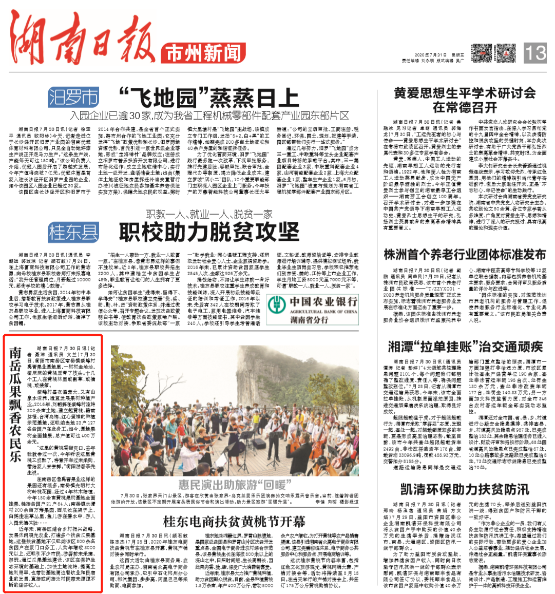 近年来,南岳区结合乡村振兴战略,发展休闲观光农业,打造多个扶贫瓜果基地。这些扶贫基地不仅吸纳该区800余名贫困户在家门口务工,人均年增收3000元以上,还吸引不少市民、游客前来采摘、游玩。通过瓜果基地建设,该区在保护生态环境的基础上,加快土地流转,提高土地利用率,也带动基地周边餐饮业和民宿业的发展,直接或间接为村民带来源源不断的经济收入。