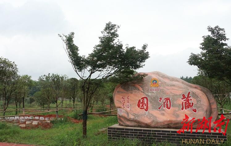 离开车间,远远看到一处园内花繁草茂。走近发现,石头上写着“窖藏园”,一坛坛酒“埋”在园中。