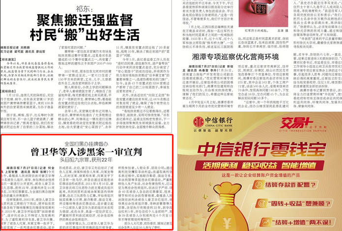 湖南日报·新湖南客户端7月27日讯(记者 何金燕 上官智慧 通讯员 陶琛 张婷)今天上午,桑植县人民法院依法对曾卫华等40名被告人组织、领导、参加黑社会性质组织一案进行公开宣判,被告人曾卫华犯九宗罪,获刑22年。该案共涉及14项罪名、33笔犯罪事实,为全国扫黑办挂牌督办的重大涉黑案件。